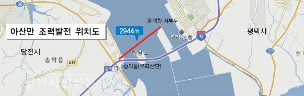 중앙분쟁조정위원회가 13일 전체회의에서 평택항 서부두 신규매립지 관할권 결정을 예고한 가운데, 한국동서발전이 ‘아산만 조력발전’ 재추진을 위한 사전 물밑 작업을 진행하고 있는 것으로 드러나 지역갈등을 조장한다는 비난을 사고 있다. 한국동서발전은 지난 2011년부터 시설용량 254㎿의 조력발전소 건설을 추진하다 중단한 바 있다. 당시 동서발전은 2013년부터 2018년까지 7천834억 원을 들여 평택항 서부두 신평면과 당진군 송악읍 사이 아산만에 2944m 길이의 댐을 막은 뒤 조수간만의 차를 이용한 발전소 건립을 추진했다.