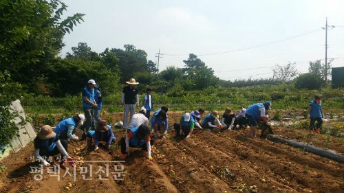 소외계층에 대한 나눔 문화 확산을 위해 평택시 중앙동 바르게 살기 위원회(위원장 이병철, 총무 신정화)가 지난달 28일 ‘사랑 나눔 감자 캐기’ 봉사활동을 펼쳤다. 이날 봉사는 지난 3월에 심은 감자를 수확한 것으로 중앙동 바르게 살기위원회 회원(자녀동반) 60여명이 함께했으며, 수확한 감자는 6월 29일 생활이 어려운 지역주민 50여명과 거동이 불편한 어르신에게 직접 전달했다.