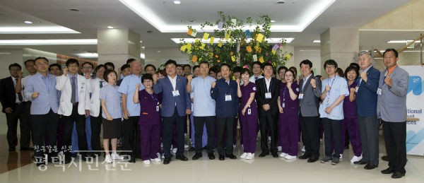 남경필 경기도지사가 메르스(중동호흡기증후군)으로 휴원 후 38일 만인 지난 6일 재개원한 평택성모병원을 방문해 정상화를 위해 노력 중인 의료진을 격려하고 환자들에게 응원의 메시지를 전했다.