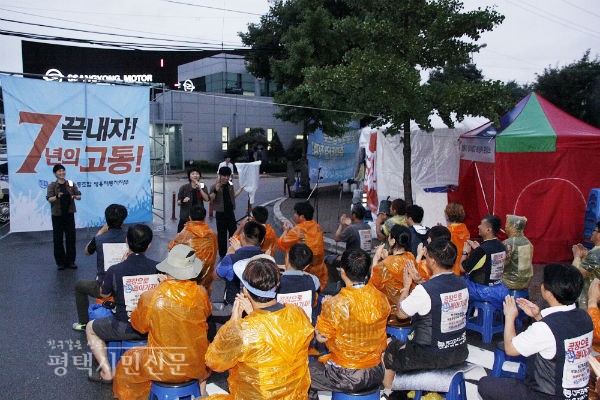 첫 노․노․사 교섭이후 해고자 복직과 손배가압류에 대한 논의가 제자리걸음을 하고 있는 가운데 금속노조 쌍용차지부는 지난 23일 매주 목요일 진행해오던 목요문화제를 대신해 결의대회를 갖고 사측이 4대 의제 논의에 적극적으로 나서줄 것을 요구했다.
