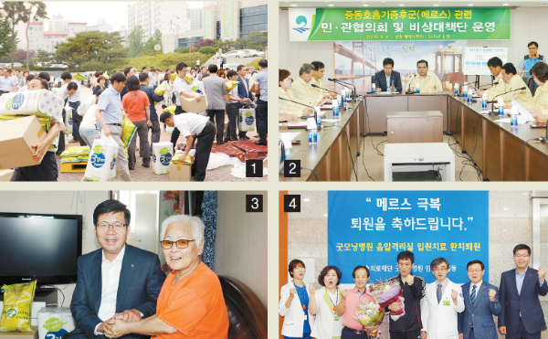 이와 더불어 1700여 전 공직자들도 상황실 24시간 비상근무는 물론 방역소독, 손소독제 등 방역물품 전달, 질병정보 및 감염예방 수칙 홍보물 배부 등 메르스 확산방지에 총력을 다했다. 또 648명의 공무원들은 어려운 상황임에도 불구하고 자택격리자를 일대일로 정해 마스크 하나에 의지하고 직접 자택을 방문해 대상자에게 생필품, 체온계, 손소독제 등을 전달했으며, 매일 전화를 걸거나 직접 방문해 건강상태를 확인하고 외부 출입을 자제해 줄 것을 강력하게 안내했다. 아울러 격리자들의 어려운 마음까지 살피고 장보기 등 일상생활의 불편함을 덜어주기 위한 노력에도 최선을 다했다.