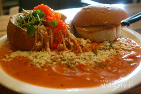 햇살이 따스하게 비치는 창가에 앉아 음식을 기다리고 있자 곧 상큼한 향기가 코끝을 맴돈다. 낮은 칼로리지만 은은함이 느껴지는 이집만의 독특한 드레싱이 뿌려진 콥샐러드는 아삭한 야채와 고소한 베이컨, 상큼한 과일 향 등이 잘 어우러져 입 안이 즐겁다. 함께 나온 통삼겹 스테이크는 바삭하고 촉촉하게 구워져 마냥 손이 간다. 여기에 재료손질부터 일일이 손을 거쳐 정성스레 만든다는 수제피클을 올려먹으면 색다른 조화도 맛볼 수 있다. 분홍 장밋빛 빠네 로제 파스타 또한 이집의 빼놓을 수 없는 인기메뉴이다. 특히, 소녀감성을 지닌 여학생들이 가장 좋아하는 메뉴이기도 한 이 파스타는 부드럽고 따뜻한 소스에 담백한 면과 빵이 함께하니 푸짐함과 멋스러움이 동시에 느껴진다.