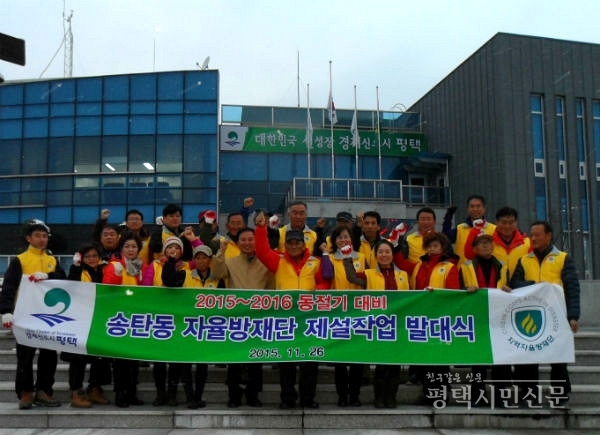 겨울이 다가와 안전사고가 빈번한 가운데 평택시 송탄동(동장 원경재) 지역자율방재단은 지난달 26일 빙판길로 인한 교통사고 등 각종 안전사고를 예방하고자 지역자율방재단 발대식을 가졌다.