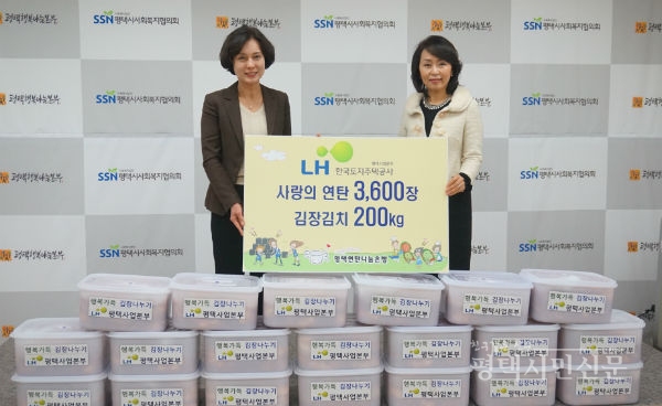 평택연탄나눔은행(공동대표 김기수·김향순·김명복)에 연탄 3600장과 김장김치 200kg을 전달한 LH(한국토지주택공사) 평택사업본부 20여 명의 임직원들은 “어렵게 지내고 있는 이웃들을 도울 수 있어 뿌듯하다”며 나눔 활동에 대한 소감을 말했다.