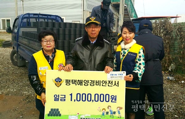 해상경비, 해난구조, 해양오염에 대한 감시 등 바다를 지키는 평택해양경비안전서(서장 신동삼)가 15일 연탄 기금전달식 및 연탄배달에 나섰다. 이날 신동삼 서장을 비롯한 해경 직원들은 평택연탄나눔은행(공동대표 김기수·김향순·김명복)에 기금 100만 원을 전달하고, 포승 5가구에 연탄 1900장을 배달했다.