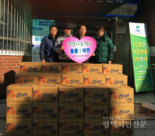 송탄민속오일장상인회는 17일 송북동 주민센터를 방문해 어려운 이웃에게 전달해달라며 라면 45박스(100만 원 상당)를 기탁했다.