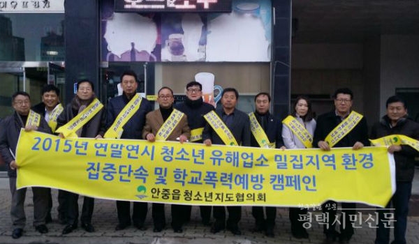 또한, 김선태 안중읍 청소년지도협의회장은 “미래의 희망인 청소년들을 더욱 안전하고 건강한 환경에서 성장할 수 있도록, 어른들이 관심을 가지고 지도와 홍보활동을 지속적으로 이어나갈 계획이며, 밝은 지역사회를 만드는데 최선의 노력을 하겠다“고 말했다.