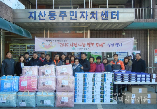 평택시 지산동 주민센터는 지난 17일 연말을 맞아 소외계층을 위한 따뜻한 겨울나기 ‘사랑나눔 행복두배 실천행사’를 가졌다.