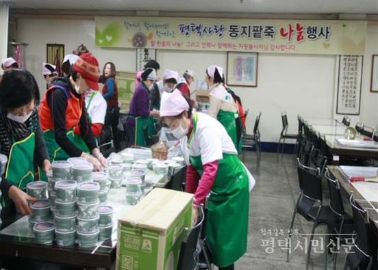 평택남부노인복지관(관장 고은자)이 동지를 맞이하여 ‘삼성전자, 할머니·할아버지와 함께하는 평택사랑! 동지 팥죽 나눔 행사’를 열었다. 예로부터 동지는 해가 가장 짧아 음(陰)이 극에 달한 날이라고 여겨 붉은 팥죽을 쑤어 액운을 막는다고 전해진다.
