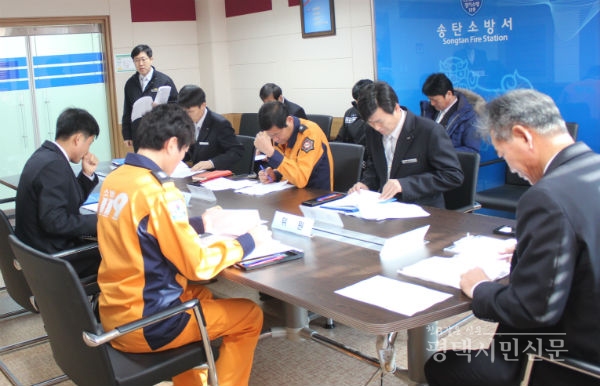 송탄소방서(서장 김철수)는 4일 청사 2층 소회의실에서 심의 위원 7명이 참여한 가운데 2016년 대형화재취약대상 선정 심의회를 개최한 결과, 선정된 16개 대상에 대해 중점 관리할 계획이라고 밝혔다.