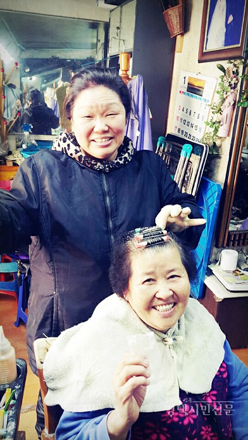 동네 어르신 한 분 한 분이 모두 부모님처럼 느껴진다는 김 원장은 푸근한 인정으로 마음을 전하고 있다. 커트 5000원, 파마 1만5000원 정도의 저렴한 비용으로 어르신들을 아름답게 변신시켜주는 김 원장 덕에 ‘하하 호호’ 웃음소리와 달달한 믹스커피 향으로 미용실이 따뜻하게 느껴진다. 이뿐만 아니라 에바다장애인종합복지관을 비롯해 도움이 필요한 곳곳에도 미용봉사를 이어오고 있다. “내가 가진 소소한 이 재주로 누군가를 예쁘게 해줄 수 있다는 것은 행복한 일이잖아요. 나는 비록 못났어도 내가 만나는 사람들은 다들 예뻤으면 좋겠어요.”