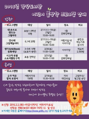 평택시립도서관(관장 김종만)은 2016년 봄방학을 맞이해 지역 어린이들과 가족을 위한 다채로운 체험·학습프로그램을 이달 17일부터 19일까지 운영한다.