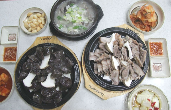 순대국밥 뿐만 아니라 버섯 육개장도 인기 메뉴 중 하나이다. 모듬수육도 술안주로 먹기에 좋다. 음식은 무엇보다 좋은 재료와 정성이 중요하다고 강조하는 이 대표는 재료를 아낌없이 넣는다고 한다. 찰순대와 모듬수육은 새송이 버섯과 섞여 눈으로 보기에도 좋고 맛과 영양 면에서도 두루두루 좋다. 특히, 지글거리는 팬 위에 깔린 버섯의 쫀득한 식감이 부드러운 수육과 잘 어울린다.