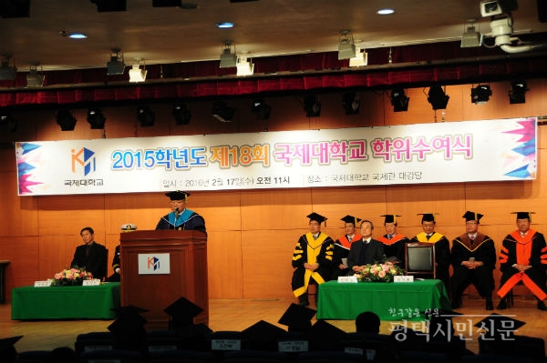 국제대학교(총장 장기원) 강당에서 지난 17일 제18회 학위수여식이 진행되었다.