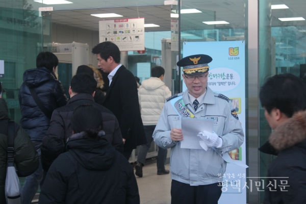 평택경찰서(서장 심헌규)는 지난 18일 아침 7시 진위면 소재 LG전자 산업단지에 방문하여 회사에 출근하는 직원들을 상대로 ‘안매켜소’ 캠페인을 실시하였다.