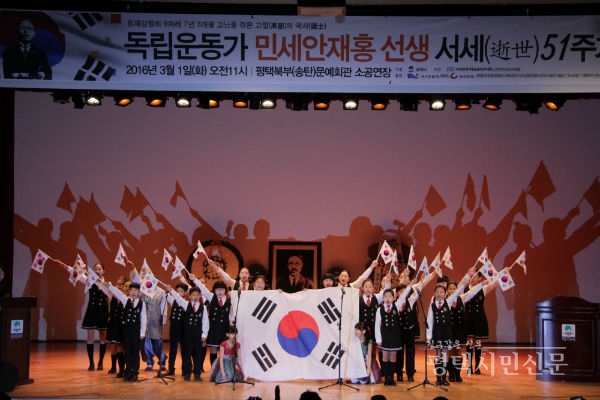 제97주년 3.1절이자 한국근현대사의 대표적인 민족운동가인 민세 안재홍 선생이 납북 후 북녘땅에서 돌아가신 지 51주기가 되는 날이기도 한 3월 1일, 평택(송탄)북부문예회관 소공연장에서 평택시가 주최하고 민세기념사업회와 고덕면주민자치위원회가 주관한 '독립운동가 민세 안재홍 선생 51주기 추모식'이 열렸다.