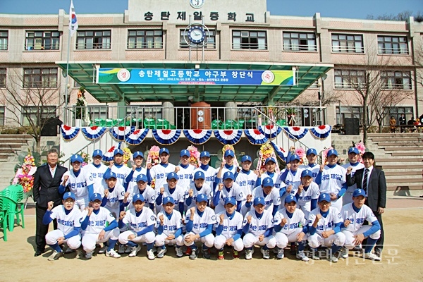 송탄제일고(교장 한상규)가 16일 학교 운동장에서 야구부 창단식을 가졌다. 평택에서 최초의 고교 야구부이자 도내 13번째 창단이며, 19일 2016 고교 주말리그에서 데뷔전을 치른다.