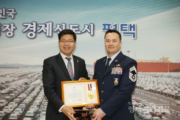 공재광 시장은 지난 1일 집무실에서 재난대응 업무에 공이 있는 주한미공군기지 맨리(Manley) 소방서장 등 2명에게 표창을 수여했다. 특히, 이 자리에는 시헨(Sheehan) 소방사령 등이 참석해 축하해 줬다.