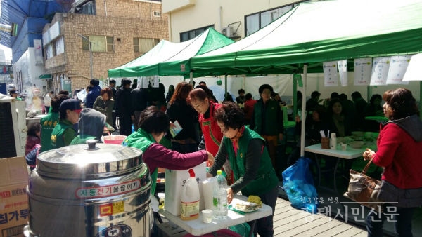 신장2동 새마을부녀회협의회(회장 김순자)는 지난달 24일 국제중앙시장에서 사랑의 먹거리 바자회를 열었다.