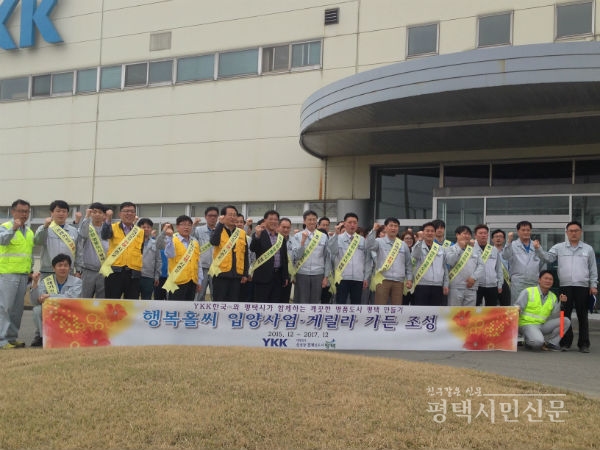 YKK한국(주)는 지난 1월 시와 행복홀씨입양사업 업무협약을 체결하고 YKK평택공장에서 송탄소방서까지 약 1Km 구간의 도로를 입양하였으며, 이날 선포식과 함께 입양구간 환경정화 활동 및 K-55후문 국도사거리(공터)에 게릴라 가드닝 사업을 펼쳤다.