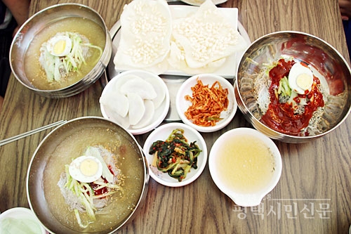 이 집의 물냉면은 담백하면서도 시원한 맛의 육수에 고구마 전분을 반죽해 즉석에서 뽑은 면을 사용해 얇으면서도 적당하게 쫄깃한 맛을 느낄 수 있었다. 비빔냉면의 비빔장은 각종 과일과 야채를 갈아 넣은 양념을 10일간 숙성시켜 사용해 달지 않고 깔끔하면서도 시원한 맛이 인상 깊었다.