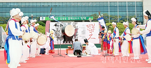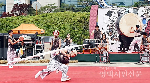 궂은비 내린 15일 오후 1시부터 6시까지 평택시청 광장에서는 유네스코 인류무형문화유산이자 국가 무형문화재인 평택농악이 흥겨운 정기발표 공개행사를 펼쳐 어깨를 들썩이게 했다.