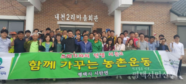 서탄면(면장 정기석)에서는 지난 24일 내천2리 마을에서 행정기관, 식품분야 정부출연 연구기관인 한국식품연구원(원장 박용곤), 마을주민 등 60여 명이 참여한 가운데 쓰레기와의 전쟁 시즌2, 마을안길 제초작업 및 도로변 환경정화 활동을 통한 ‘함께 가꾸는 농촌운동’을 전개했다.