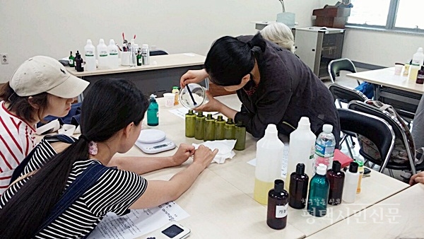 송탄보건소(소장 송경희)는 아토피·천식예방사업의 일환으로 지난 1일 보건소 3층 소강당에서지역 내 아토피 환아 및 환아 부모를 대상으로 피부염증 완화·보습 관리에 활용할 수 있는 ‘천연 보습제 만들기’를 운영했다.