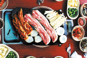 쫄깃쫄깃한 제주도 똥돼지 김치 삽겹살집으로 오늘의 저녁식사를 초대한다. 구들장 돌판에 노릇노릇하게 구워진 두툽한 제주도산 똥돼지 삽겹살을 한입에 쏘옥∼, 소주한잔의 유혹을 쉽게 뿌리치지 못하게 된다.