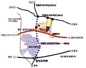 아울러 그 동안 유통단지 지구지정이 늦어지면서 함께 늦어지고 있는 쌍용자동차 기숙사앞에서 도일동 340호 지방도 까지 연결되는 333호 지방도 확장공사도 현재 설계중에 있으므로 유통단지 설계가 완료되는 것과 동시에 공사가 시행될 계획임을 알렸다.
