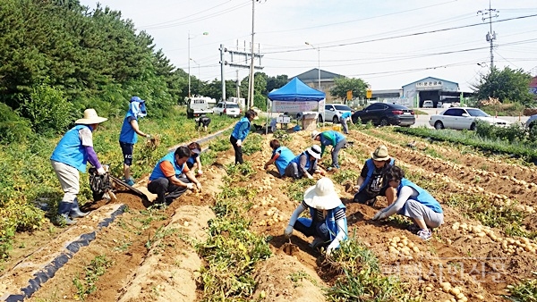 서정동 바르게살기운동위원회(위원장 김성환)는 지난 25일 가재동 소재 유휴지 300평에 직접 경작한 감자 1000kg을 수확하며 구슬땀을 흘렸다. 이번에 수확한 감자는 일부 판매해 수익금으로 지역의 어려운 청소년들을 위한 기금으로 사용하고, 남은 감자는 저소득 가구에 전달할 예정이다.