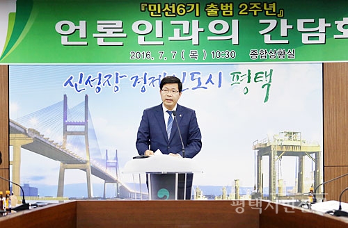평택시는 지난 7일 종합상황실에서 언론인 70여 명이 참석한 가운데 누구나 살고 싶은 명품도시 평택을 건설하기 위해 이뤄낸 민선 6기 2년간의 성과와 향후 시정운영 방향을 설명하는 기자간담회를 진행했다.