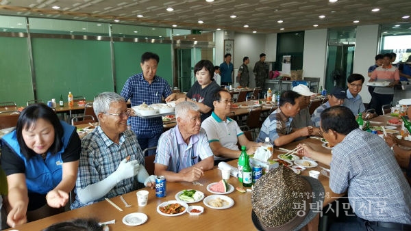 고덕면바르게살기위원회(위원장 허원녕)는 지난 19일 초복을 맞이해 건강한 여름나기 행사로 경로당회장 등 70여 명을 초대해 점심으로 삼계탕을 대접했다.