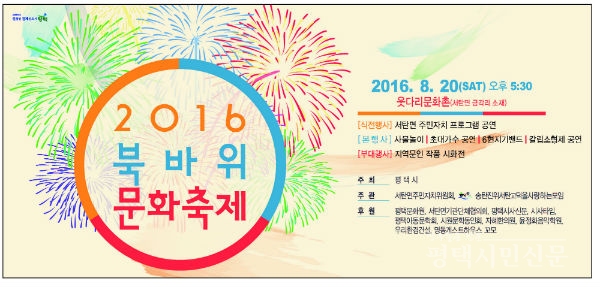 북바위문화축제는 지역 문화예술인 재능나눔으로 시민과 함께 호흡하고 소통해 테마 지역문화 축제 행사를 만들어 가고자 하는 취지에서 시작됐다.