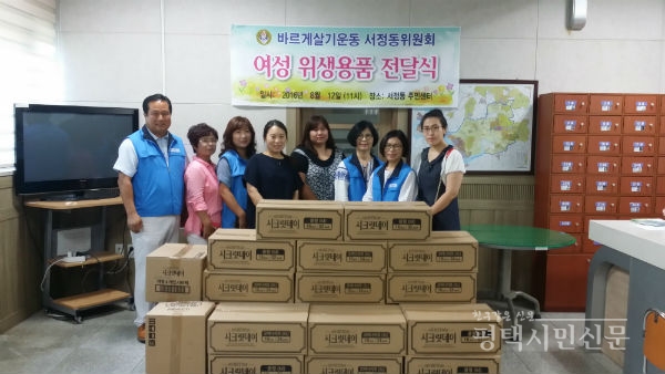 바르게살기운동 서정동위원회(위원장 김성환)는 지난 12일 서정동 주민센터에서 지역아동센터 4개소에 여성위생용품(생리대)을 전달했다.