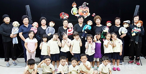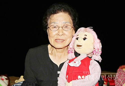 “안돼요! 싫어요! 만지지 말아요!” 무대 위 인형극을 보는 아이들의 눈이 동그랗다. 무대 뒤에는 과연 누가 있을까? 검은 천막이 가려져 있는 무대 뒤로 가자 할머니들이 인형을 움직이며 연극에 몰입하고 있다.