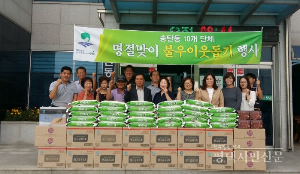 송탄동 10개 단체 협의회(회장 최대혁)는 지난 8일 민속고유의 명절 추석을 맞아 저소득층 지원을 위한 사랑의 나눔 행사를 가졌다.