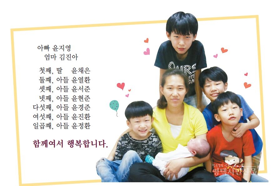 “우리 집에 일곱째가 태어났어요.” 유럽연합(EU)의 공식 통계기구인 유로스타트(Eurostat)가 최근 발표한 <세계 속의 EU> 자료에 따르면 한국은 G20 국가 중 가장 낮은 출산율(2013기준, 1.2%)을 차지하며 저출산이 심각한 사회문제로 대두되고 있다. 이러한 가운데 관심을 끌고있는 가족이 있다. 그 주인공은 신장2동에 거주하고 있는 김진아 씨네이다.