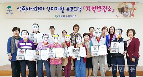 송탄보건소(소장 송경희)에서는 18일 보건소 소강당에서 경증치매환자 대상 인지재활 프로그램인 ‘기억발전소’ 12회기를 마치고 그동안 활동 작품 전시회 및 수료식을 가졌다