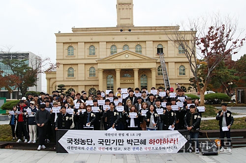 이들은 “모든 권력은 국민으로부터 나오지만 대한민국의 현실은 최순실에게 있다”며 “특검을 통해 철저하게 수사해 진실을 밝혀야 한다. 이번 사태에 책임을 지고 대통령을 포함한 책임자들이 즉각 사퇴해야 한다”라고 주장했다.