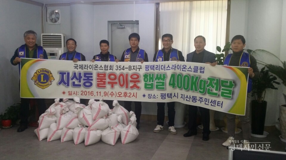 평택리더스라이온스클럽(회장 김도훈)은 지난 9일 지산동의 독거노인 및 장애인 등 불우이웃에게 전달해 달라며 백미 400kg을 지산동주민센터에 기탁했다.