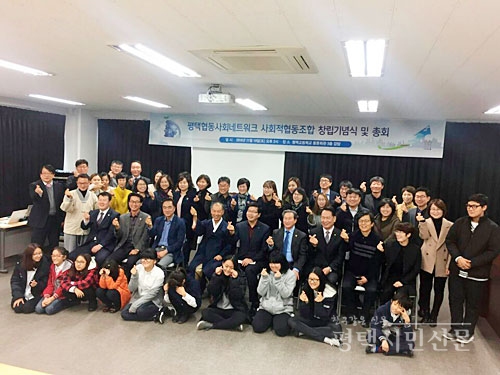 평택협동사회네트워크 사회적협동조합(이하 사회적협동조합)이 지난 19일(토) 평택고등학교 동문회관에서 100여명이 참석한 가운데 창립식을 가졌다. 사회적협동조합 전신인 평택협동사회네트워크가 2014년 평택지역 14개 사회적경제 조직 연대체로 만들어진지 2년 만에 재창립한 것이다.