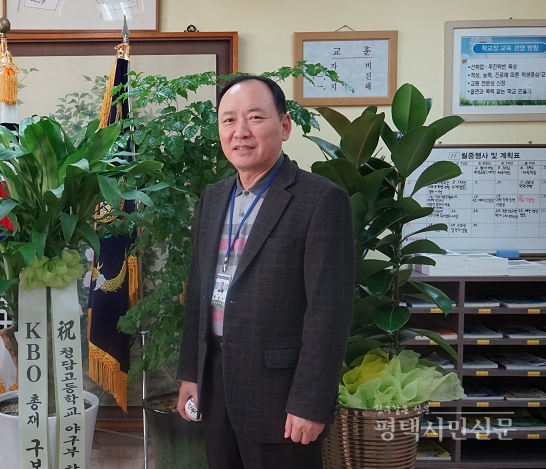 평택에 두 번째 고교 야구부가 생겼다. 청담고등학교(팽성읍)가 송탄고등학교 야구부에 이어 지난달 14일 KBO(한국야구위원회)의 지원을 받아 야구부를 창단했다. 창단 과정과 앞으로 운영 계획을 듣기 위해 방남수 교장을 만났다. 방 교장은 청담고등학교 1회 졸업생으로 2013년 공모 교장으로 선발되어 그해 5월에 취임했다.