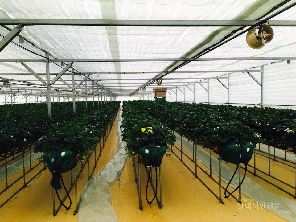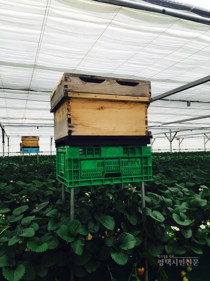 비닐하우스 한 동에 커다란 나무상자 세 개가 우뚝 솟아있다. 충매화면서 풍매화인 딸기의 수정을 위해서는 바람이나 곤충이 필요하다. 이를 위해 들여 놓은 벌통이다. 벌통 안의 벌들은 기온이 15℃이상 올라가고 햇빛이 들어오면 나와서 일을 한다. 그러나 날이 흐린 날은 나오지 않기 때문에 햇빛이 없는 날을 대비해 수정 벌도 들여놓았다고 한다.