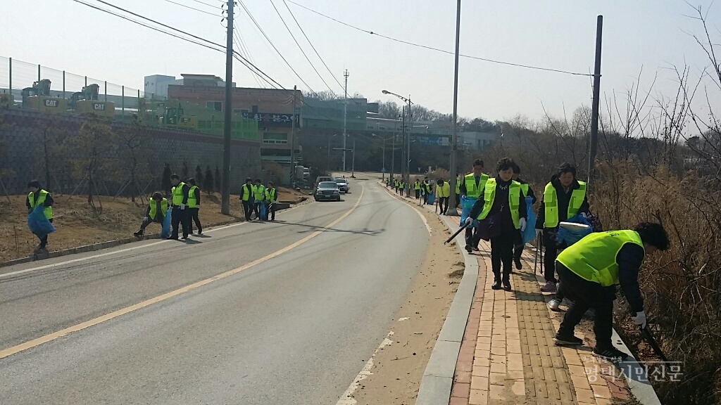청북읍 생활개선회(회장 이영숙)가 2일 도로입양 구간인 청북중학교 입구에서 회원 60여 명이 참여한 새봄맞이 대청소로 상쾌한 3월을 시작했다.