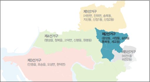 >> 경기도의원 선거 평택시 제2선거구 (중앙동, 서정동, 송탄동, 통복동, 세교동)