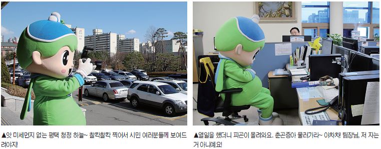그리고 하나 더 걱정되는 게 있다면, 여름이 다가오고 있다는 거예요. 저는 추위보단 더위를 더 잘 타는데 점점 봄바람이 불어오고 있으니 조금씩 걱정이 밀려오네요. 여러분, 저 잘 견딜 수 있겠죠? ‘평택이’를 위해서라도 시민 여러분들께서 지구가 더 더위지지 않게 환경보호에도 힘써 주시길 부탁드려요.