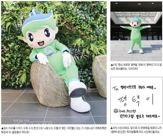 [평택시민신문] 편집자주_<평택시민신문>의 인터뷰 인물로서 캐릭터를 소개하는 기회는 처음입니다. 평택시청의 캐릭터 ‘평택이’는 실제 인물은 아닐지라도 평택시를 알리는 데 든든한 한 몫을 하고 있는 친근한 존재임은 분명합니다. ‘평택이’를 통해 시민들이 평택시의 대소사를 신속하게 들을 수 있고, 전국의 다른 도시에서도 ‘평택이’를 통해 평택시를 알게 될 것입니다. 그런 의미에서 이번호 인터뷰의 문체가 다소 경쾌하고 낯설더라도 ‘평택이’의 성격을 이해하는 마음으로 독자 여러분들의 너그러운 양해 부탁드립니다.