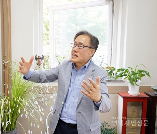 [평택시민신문] 평택YMCA는 제41차 정기총회에서 박종승 평택호스피스선교회 목사를 제16대 이사장으로 선출하고 지난 5월 14일 취임식을 가졌다. 박종승 이사장은 지난 19년간 평택에서 말기암 환자와 가족들의 심리적 안정을 위해 호스피스 봉사활동을 해왔으며 2017년에는 ‘상치모(상실감을 치유하며 자존감을 회복하는 모임)’ 데이케어센터를 개관해 암환자의 자존감 회복을 위한 심리상담과 치료 프로그램을 해오면서 사회를 따뜻하고 밝게 비추는 역할을 해왔다. 이번에는 평택YMCA 이사장으로서 어떤 비전과 계획을 가지고 있는지 <평택시민신문>이 만나 이야기를 나눴다.