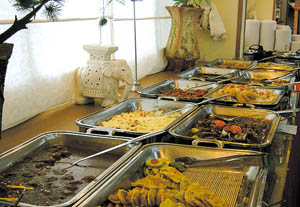 여기에 왕갈비, 닭데리야끼, 스칸디나비아폭, 인삼꿀무침 등 주음식과 대하소금구이, 장어구이, 왕갈비구이 등 즉석요리는 다른 뷔페에서는 찾아보기 힘든 요리들이 푸짐히 쏟아진다.